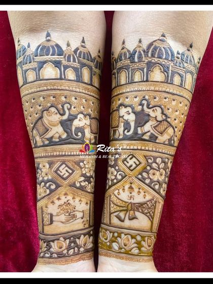 I specialize in creating sacred mehendi designs for religious ceremonies, particularly for occasions like Diksha in Jainism. My designs incorporate traditional symbols including elephants and swastikas, deeply rooted in cultural significance.