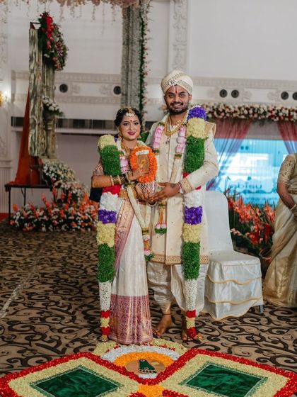 See how I bring wedding dreams to life. This gallery features real couples on their special day, wearing custom-designed Muhurtham sarees, sherwanis, and coordinated ensembles that reflect their unique stories.