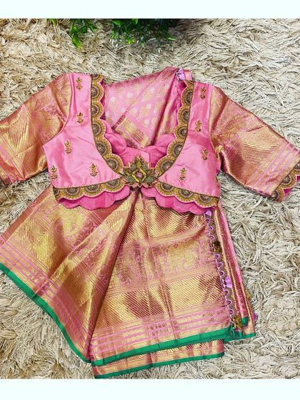 - Hand embroidered kids lehenga and half sarees (Langa Voni) for girls who want that festive look