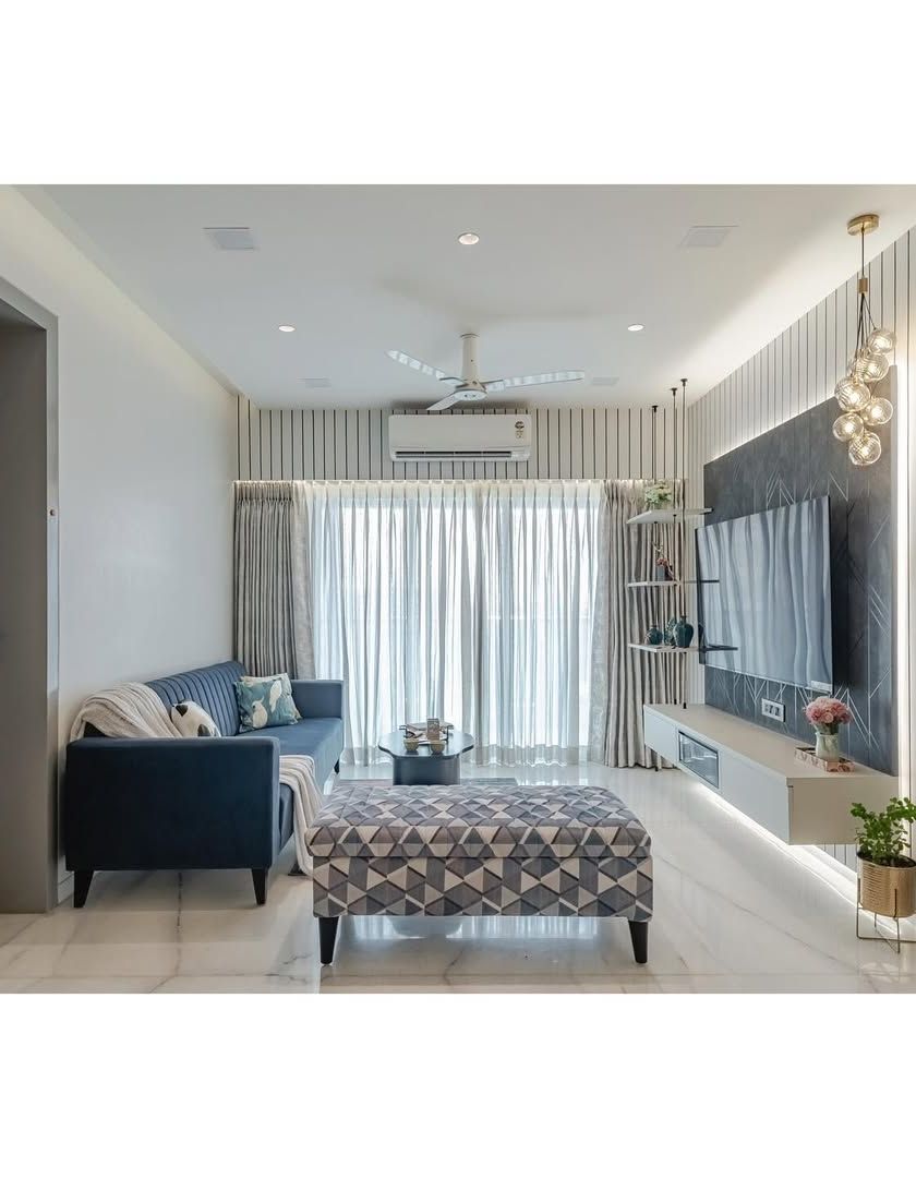 I love creating dynamic living areas by pairing a sophisticated neutral base with a bold pop of color, like a vibrant blue sofa or a striking accent wall. These designs are all about expressing personality while maintaining a chic, contemporary feel with clean lines and balanced layouts.