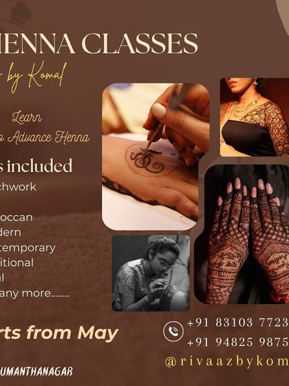 I teach step-by-step henna art classes in small groups, where you learn everything from basic lines to advanced designs and how to make your own natural henna cones.