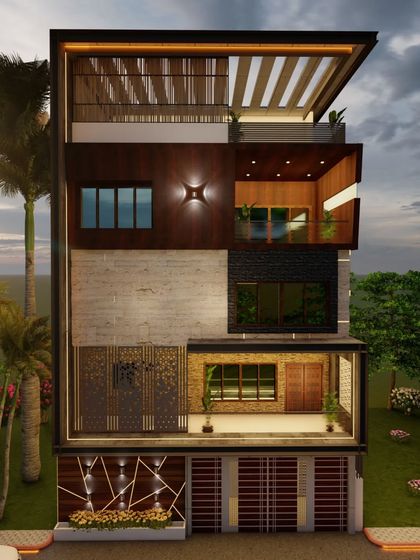 If you want something modern and lasting, that's my jam. I use lots of different materials together - wood, stone, even exposed concrete - for a bold look. Jali work, big glass windows, and integrated lighting (strip lights, spotlights) are things I keep coming back to. Nighttime? Your building will stand out with my lighting plans.