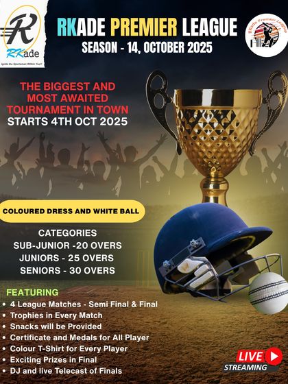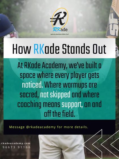 We’re a family-driven academy—togetherness is our thing. Started with just cricket, now RKade’s got kids smashing it in football, tennis, basketball, skating, karate too. Been at it since 2016, lots of sweat, lots of laughs, some media headlines, and maa kasam (I swear) – we don’t quit. Our students’ wins are our wins. My wife jokes she’s stuck with me, but honestly, I’m just here to make every kid feel unstoppable. Jai Maa Durga.