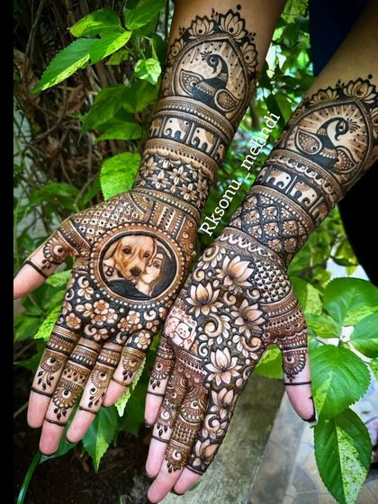 Portrait Mehndi & Storytelling Designs - Want your papa’s face or your love story in henna? I do portraits, names, and custom symbols.