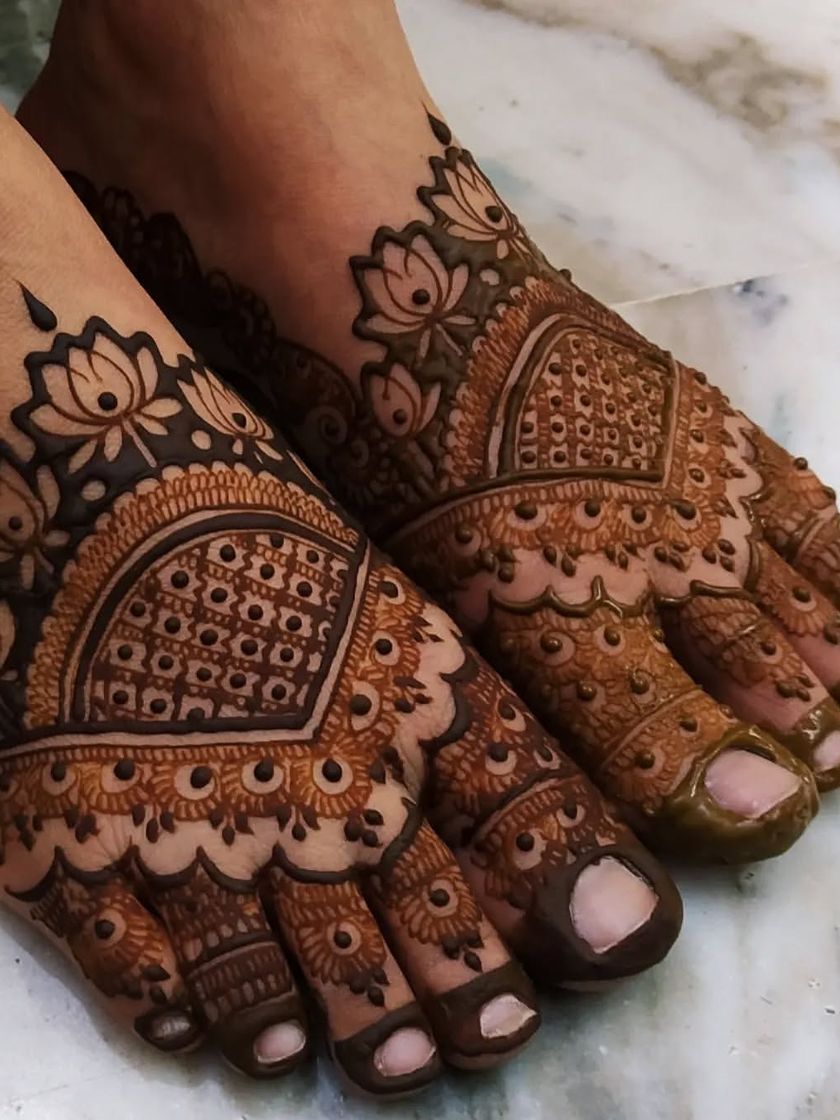 Complete your bridal look with beautifully adorned feet. I offer a range of designs, from simple and elegant mandalas to full-coverage intricate patterns that match your hand mehndi. Using my pure herbal paste, I ensure the design is beautiful from the first application to the final rich stain.