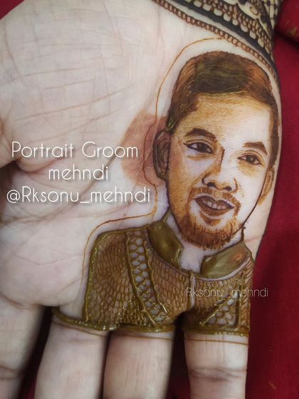 Mehndi is a celebration for everyone, and I love creating custom designs for grooms. Whether it's a simple design with initials, a wedding hashtag, or a full portrait of the bride, these pieces are a wonderful way for the groom to participate in the tradition and honor his partner.