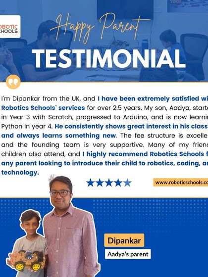 We’re Roboticschools. Started out in Bangalore, now we’re everywhere—UK, USA, Singapore. Our thing? Making tech fun, not scary. Kids as young as 5 have built robots with us. One time, a 6-year-old called us ‘Best robotix teem’—cutest award ever. We’re not just teachers, we’re Roboteers, helping kids get that ‘Aha!’ moment, whether it’s coding for the International Space Station or just making a robot blink. Come join our crazy crew.