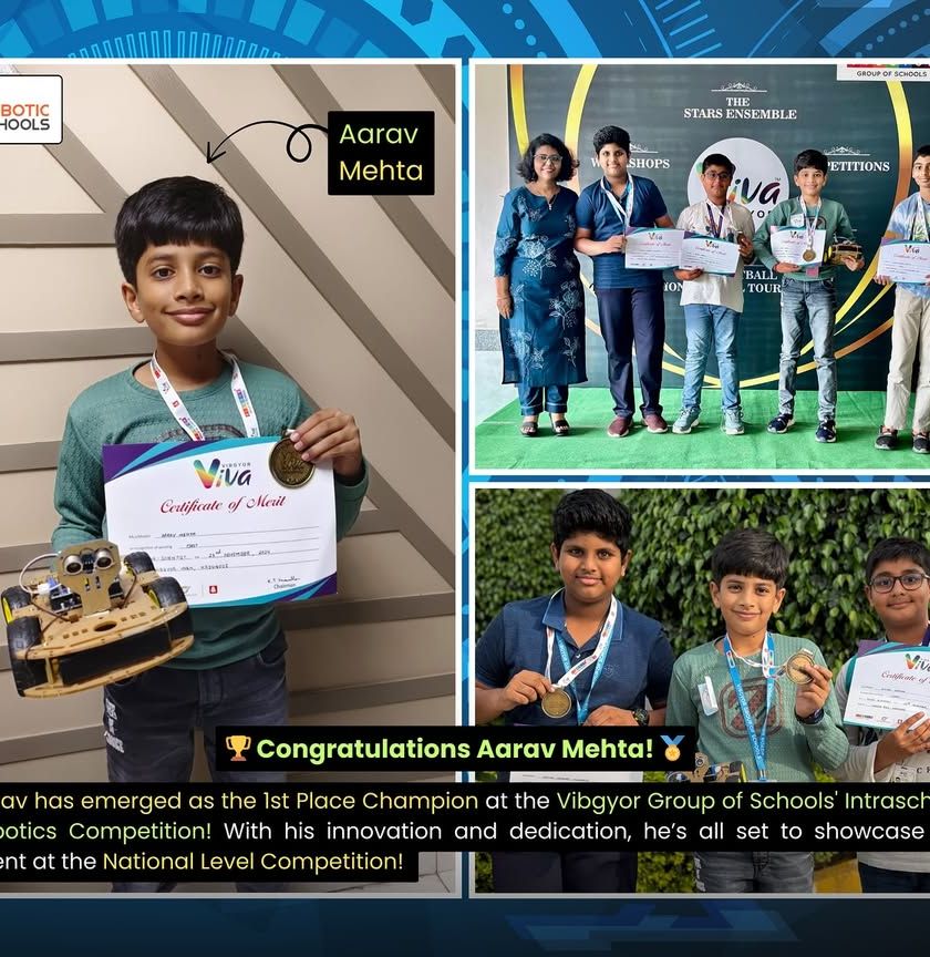 We don't just teach theory; we prepare students to win. This is a showcase of our 'Roboteers' earning top ranks in national and international competitions like the World Robot Olympiad, Global Hackathon, and Astro Pi Challenge.