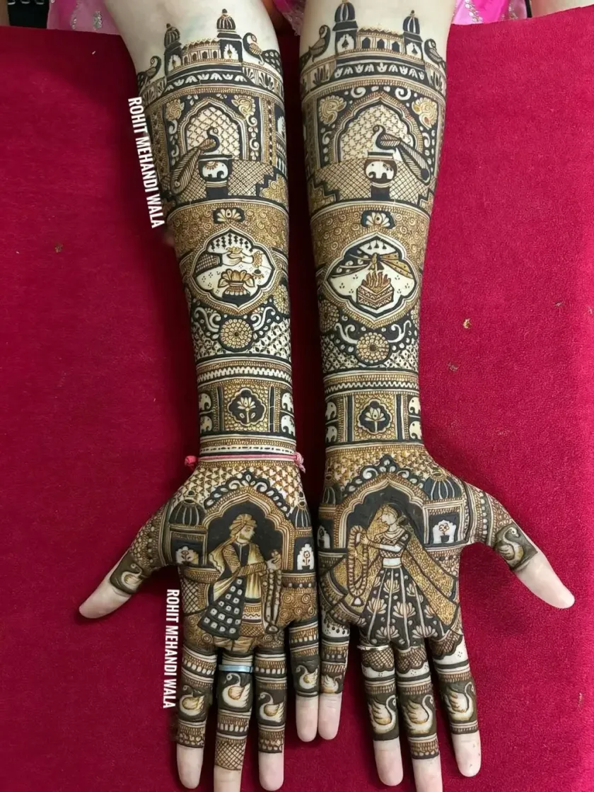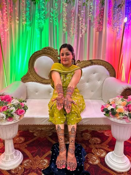 I specialize in creating unique mehndi designs that tell your personal story. From portraits of you and your partner to important moments like the varmala ceremony, I can draw anything to make your bridal henna truly one of a kind.