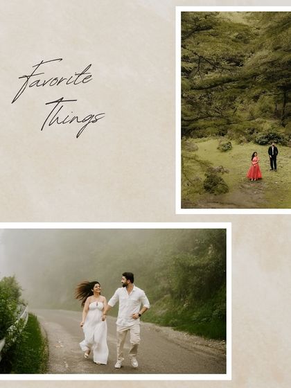 I plan and shoot pre-wedding photos and films in your choice of style and location, help with outfits, and deliver edited photos and short video reels.