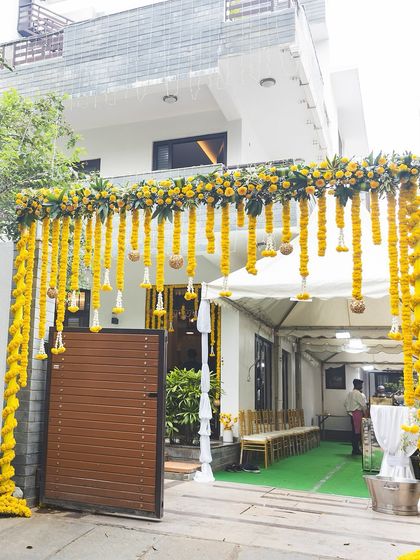 We design decor for spiritual and heritage events like Myra or Bhaat ceremonies with deep respect for tradition. We specialize in creating serene and beautiful atmospheres using elements like marigold arrangements, Pichwai art-inspired details, and elegant floral installations.
