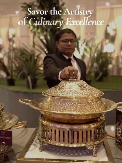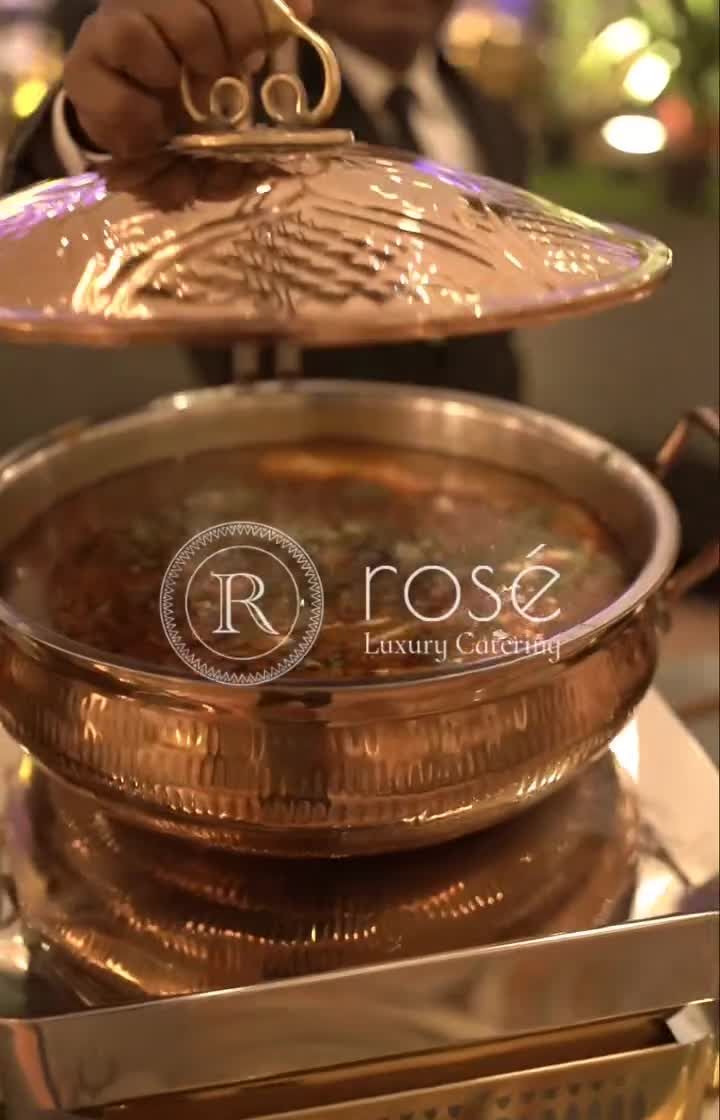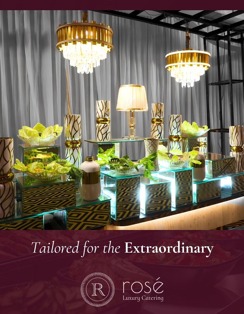 We design visually stunning buffet displays that serve as the centerpiece of your event. Using our signature collection of brass and copper serveware, sophisticated lighting, and artistic arrangements, we transform the dining area into a luxurious landscape of culinary abundance.