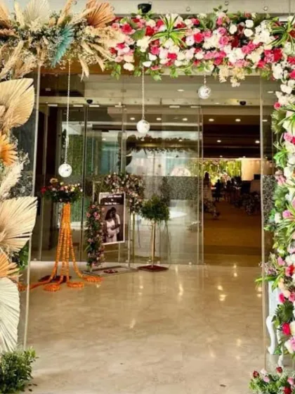 I take boring office spaces and make them lively, straight up. Roshan Flowers ka style simple hai - we make any corporate event feel like a celebration, not a meeting. From fresh phoolon ka jaadu (magic of flowers), genda aur roses se arches aur entry gates - to fairy lights and fun props, I go all out. Flimsy stuff? Nahi milega (won’t happen). Setups stay solid, no tension about things falling apart.