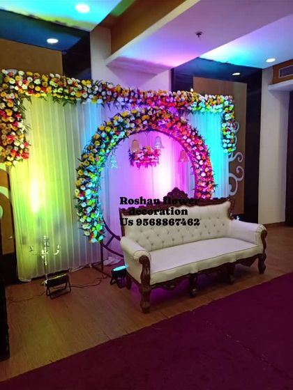 - Engagements: For your ring ceremony and stage decoration, I create grand floral arches for wedding entrances, pastel themes, and shimmery walls. Chandeliers and neon signs add drama.