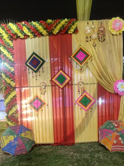 I bring the fun and color to your Haldi and Mehendi functions with traditional and modern designs. I use everything from classic genda phool (marigold) decorations and colorful drapes to unique backdrops with tassels, umbrellas, and folk art elements.
