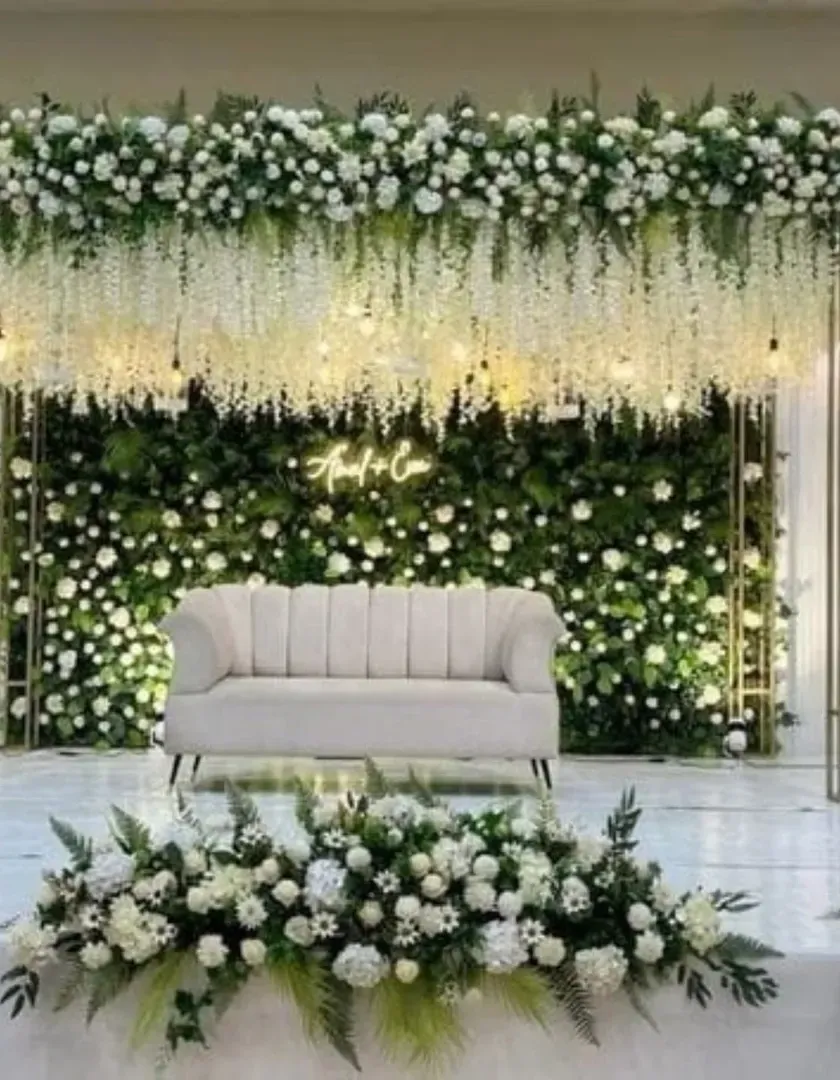I create beautiful stages and settings for your ring ceremony, sangeet, or reception. From lush green walls with neon signs to classic pastel drapes and chandeliers, I design a backdrop that makes your big day feel grand and special.