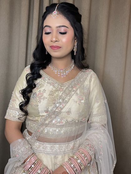 I create custom bridal and occasion looks with real, unedited results, including makeup, hairstyle, and perfect saree or lehenga draping to match your style and tradition.