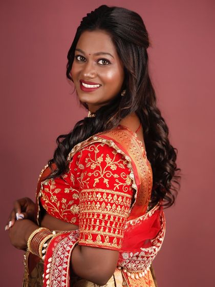 A complete bridal look goes beyond makeup. I offer expert hairstyling, from traditional Khopa buns to modern curls and updos, as well as perfect saree and lehenga draping to complete your look.