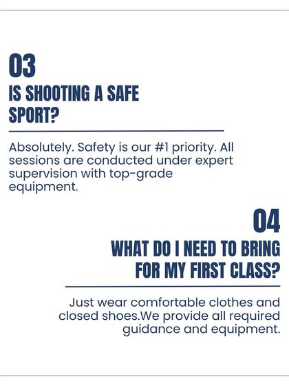 Your safety is our highest priority. All sessions are conducted under strict supervision, and we instill the fundamental rules of firearm safety in every student from the very first class.