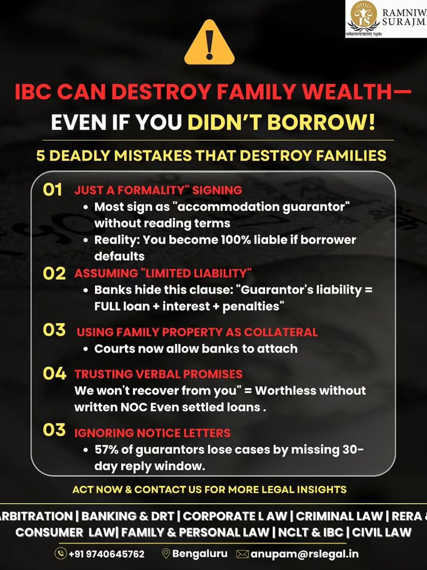 A business loan can put your family's home, savings, and even jewelry at risk, especially if you have signed as a guarantor. We detail the specific ways banks and the NCLT can attach personal assets and provide strategies to legally safeguard your family's wealth from business liabilities.