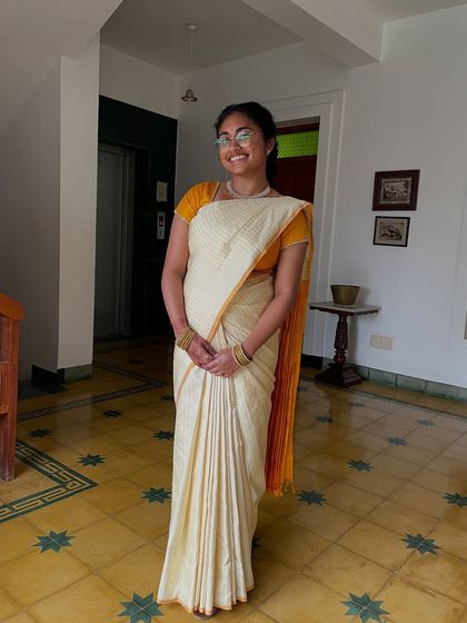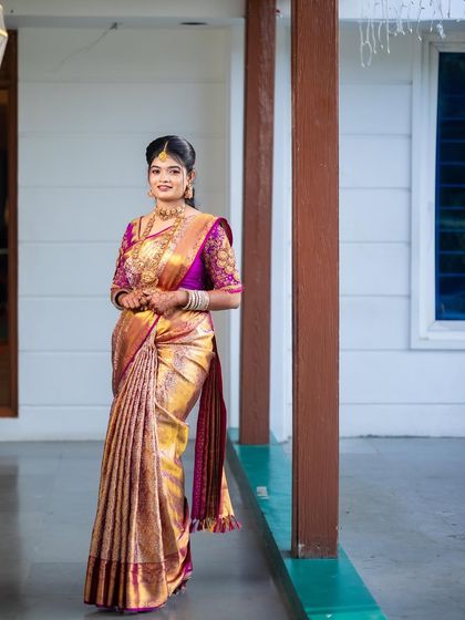 Custom draping for all clients - I work with Chennai brides, actresses, even international clients. Traditional or fluffy pleats, I do it all.
