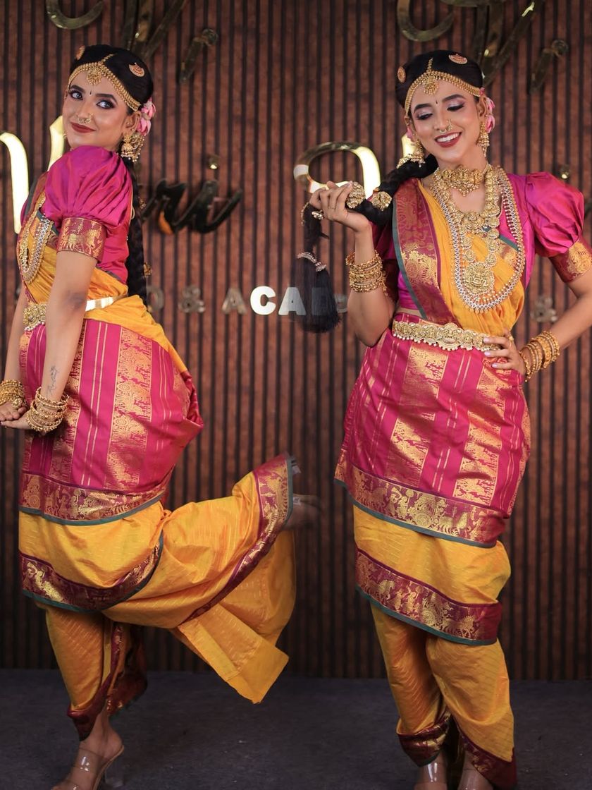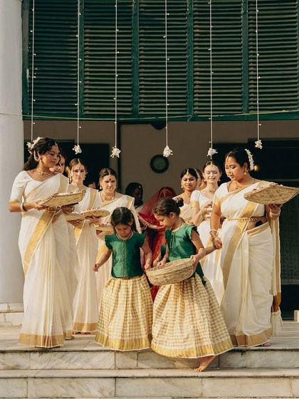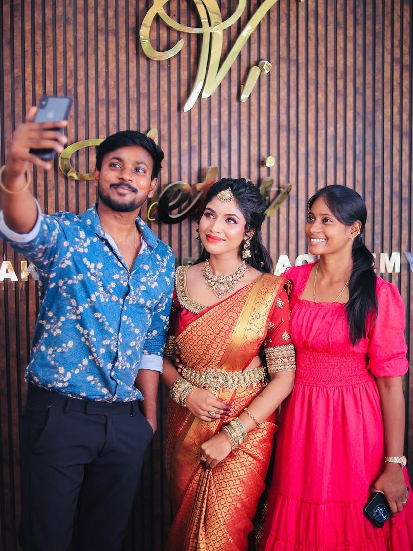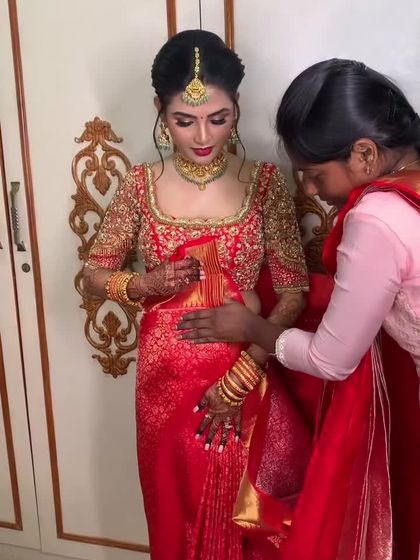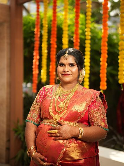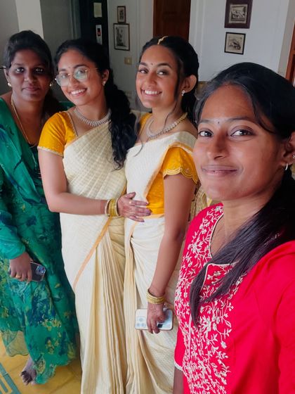 Beyond weddings, I drape sarees for all of life's important events, including Valaikaappu (baby showers) and other traditional ceremonies. I am also skilled in regional draping styles like the Iyer Madisar.