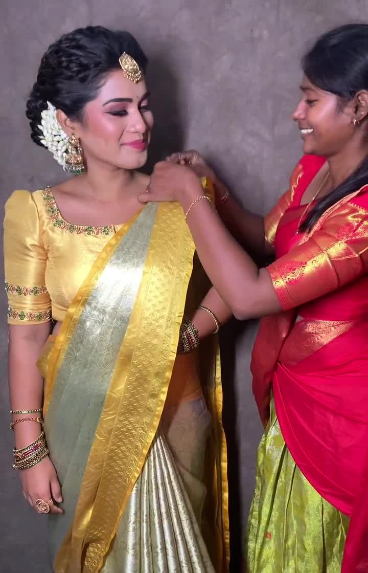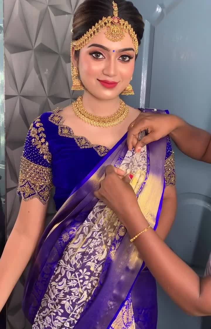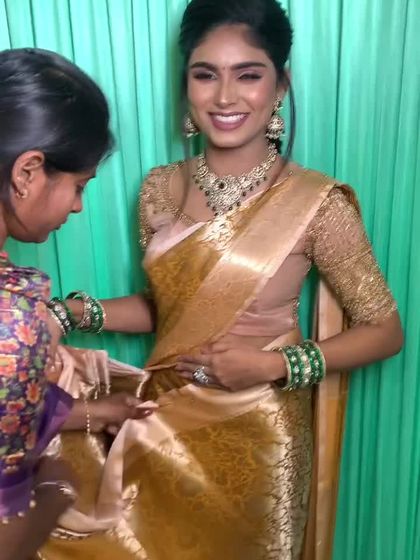 For your most special day, I provide expert bridal draping services. I specialize in handling heavy Kanchipuram and silk sarees, ensuring every pleat is perfect and you are comfortable throughout the ceremony.