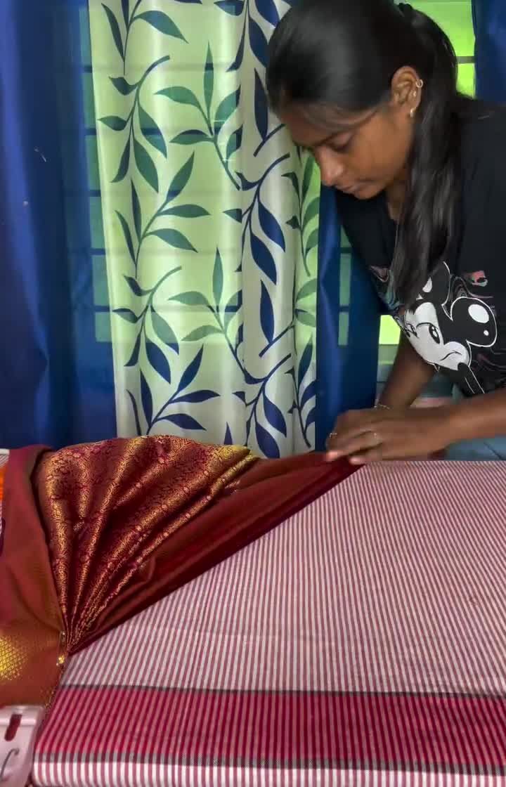 Your pre-pleated saree is delivered ready for your convenience. I offer neat box folding, which is perfect for travel and shipping anywhere, or hanger folding to keep the pleats fluffy and ready to wear.