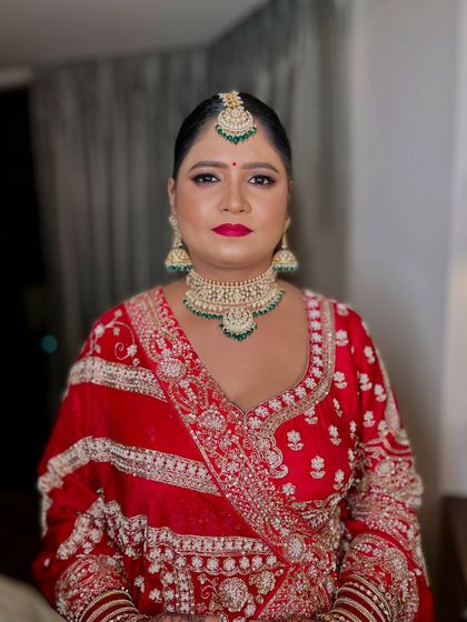 For the bride who dreams of a classic and regal wedding day. This gallery features timeless looks with rich color palettes like reds and maroons, intricate eye makeup, and majestic jewelry, perfect for a grand celebration.