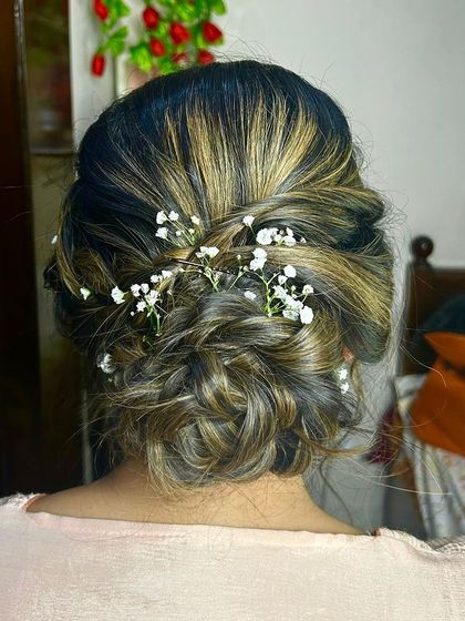 I specialize in creating diverse hairstyles ranging from intricate updos to elegant buns and loose curls. My expertise includes adorning hairstyles with traditional elements like flowers and accessories to complement bridal and party looks.