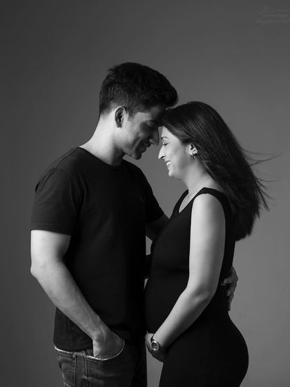 I do relaxed maternity photoshoots in Mumbai, capturing real moments with you, your family, and even pets, in studio or outdoors, with styling help and edited images included.