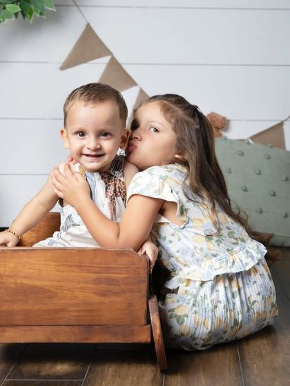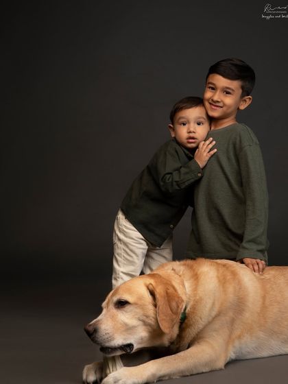I photograph real moments with families, kids, and even pets, offering relaxed sessions in my studio or outdoors, and deliver edited images or custom coffee table books.