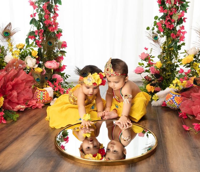 Celebrate Janmashtami by transforming your little one into a divine Krishna or Radha with my special themed mini-sessions. I use vibrant, traditional props like matkis, peacock feathers, and floral arrangements to create a colorful and authentic backdrop for these truly magical portraits.