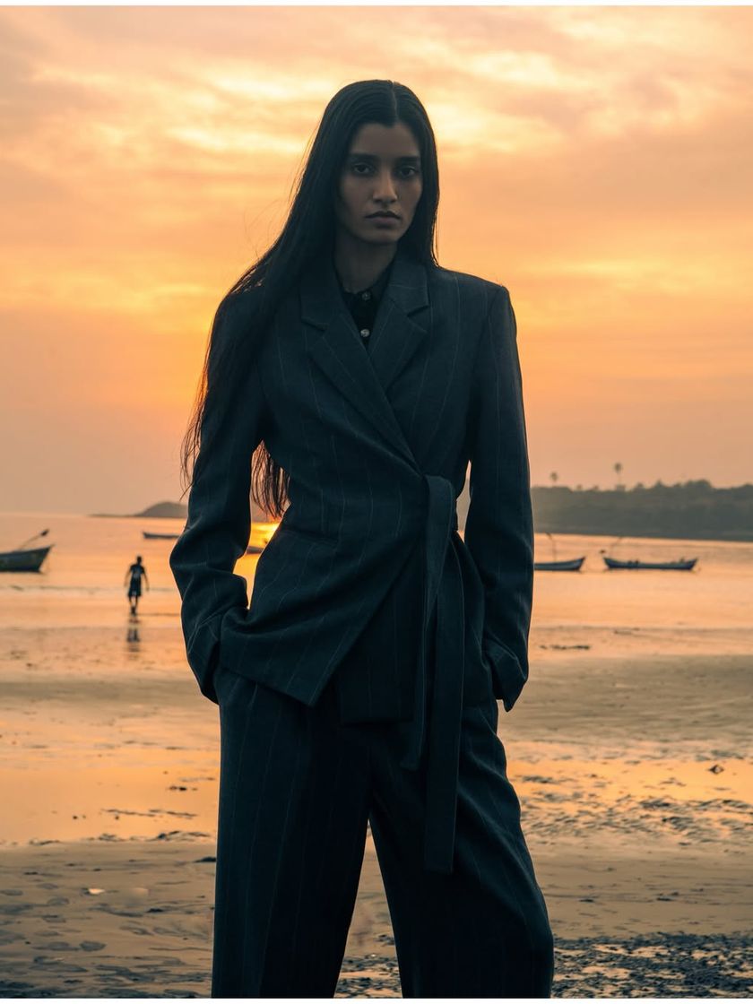 I chase the light, especially that golden hour magic. These outdoor and beach editorials are all about capturing a vibe, using natural environments to create a powerful backdrop for fashion. We work with the elements to create shots full of mood and movement.