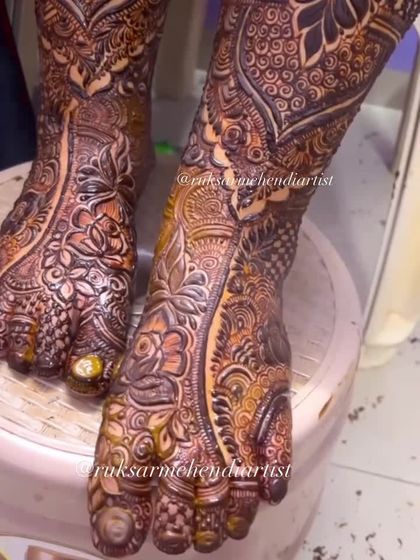 Your bridal look isn't complete without beautiful mehendi on your feet. I create designs that complement your hand mehendi, from simple and elegant patterns to full, intricate coverage up to the legs. I use only natural henna to ensure a rich, dark stain.