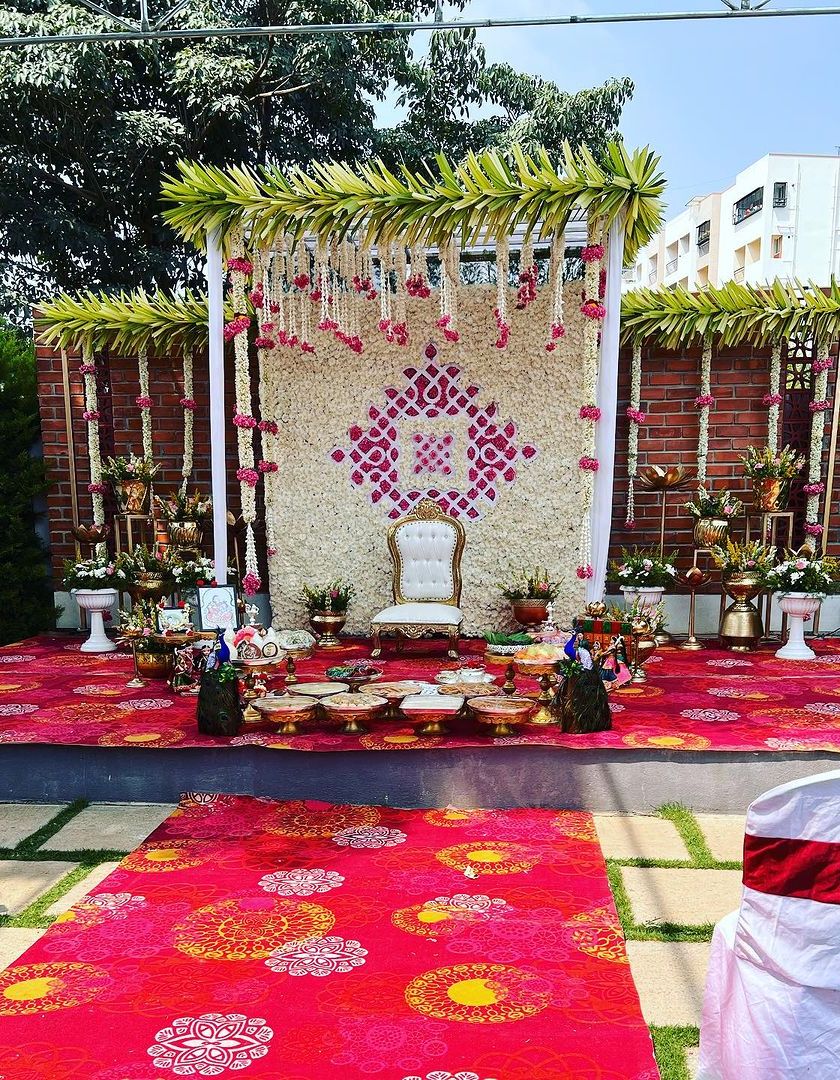 I decorate for all of life's precious milestones, including Seemantham (baby showers) and puberty ceremonies. I create beautiful, personalized settings with options for both traditional floral arrangements and modern themed decor.