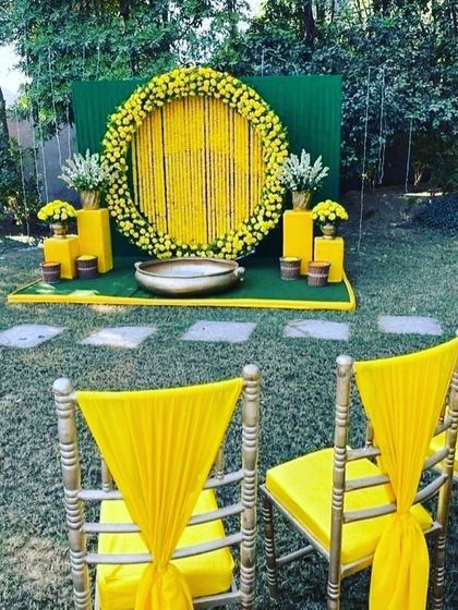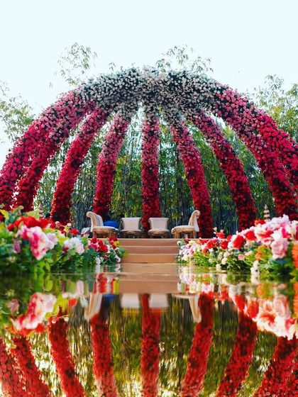 - Custom stage decoration for weddings, with floral walls, madapams, arches, fairy lights, and even neon signs if you want that vibe.