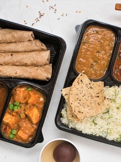We pack our thalis to be a complete, satisfying meal, just like you would get at home. Each box includes your choice of curry, our signature dal, soft phulkas, jeera rice, and all the essential sides like curd, papad, and achar.