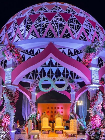 The mandap is the heart of the wedding, a sacred space where promises are made. We design these centerpieces to be not only visually stunning but also rich in symbolism. Our designs range from the cosmic geometry of the Shri Yantra to the eternal bond represented by our Anant dome, ensuring the ceremony space is as meaningful as it is beautiful.