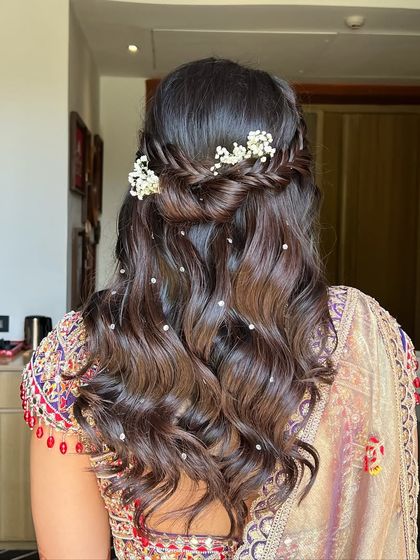 I style hair for weddings, festivals, and parties, offering custom looks and accessories for you and your guests, and I can travel outside Mumbai for events.