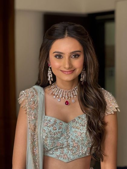 - Soft glam waves for reception - works great with pastel lehengas or gowns.