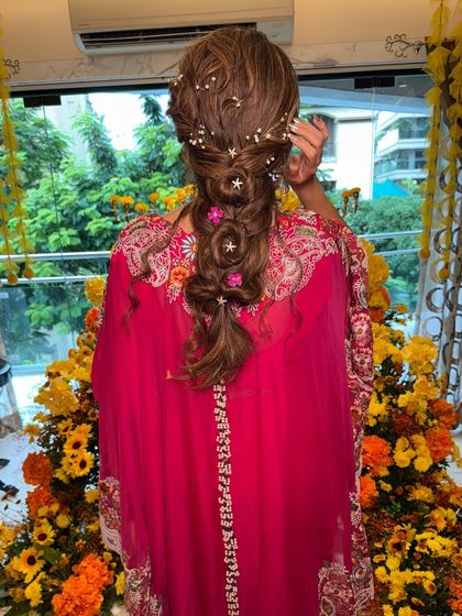 - Braided ponytail for mehendi - fun, comfy, and looks gorgeous in photos.
