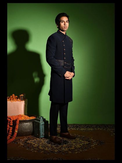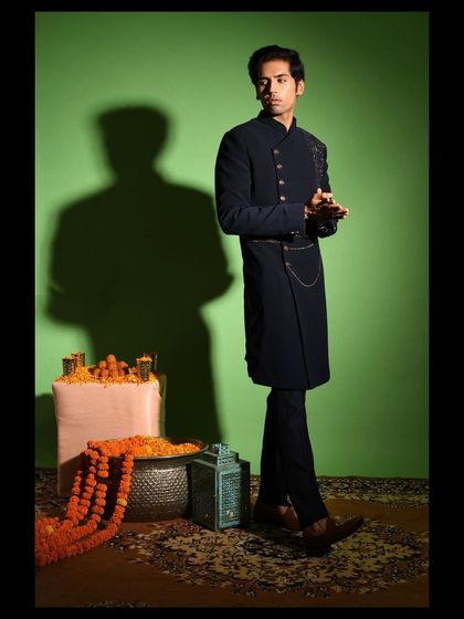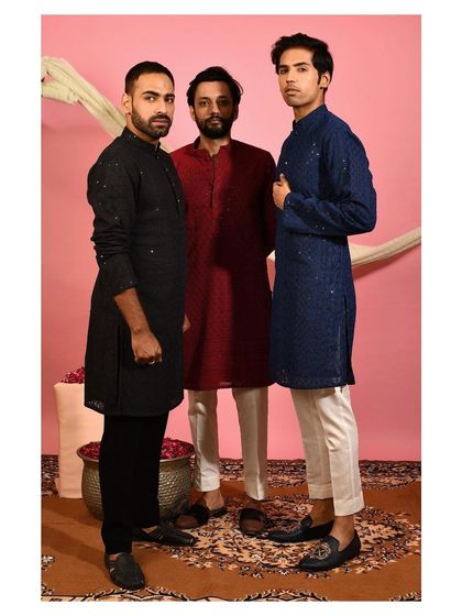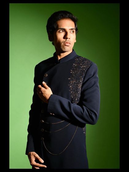I make custom men's ethnic and fusion outfits with sharp tailoring, hand embroidery, and unique details, so you get a fit and style that’s different from ready-made options.