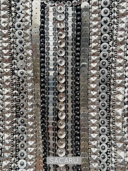 - Modern handwork using glass beads, crystals, sequins, and bugle beads.