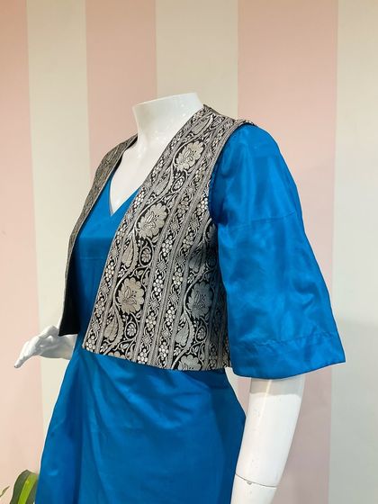 We turn your old sarees into new custom outfits like dresses, jackets, or sets, working with you to design and upcycle each piece based on the fabric and its condition.