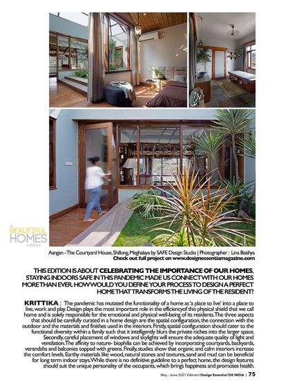 I am grateful to have my work and design philosophy featured by leading architecture and design publications. These articles offer a deeper look into the stories and concepts behind my projects, particularly the 'Aangan' house, and my mission to promote sustainable living through thoughtful design.