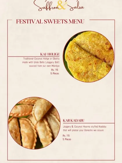 - Alternate Options: Subject to availability, may include Bele Holige (Lentil stuffed) or Andhra Holige.