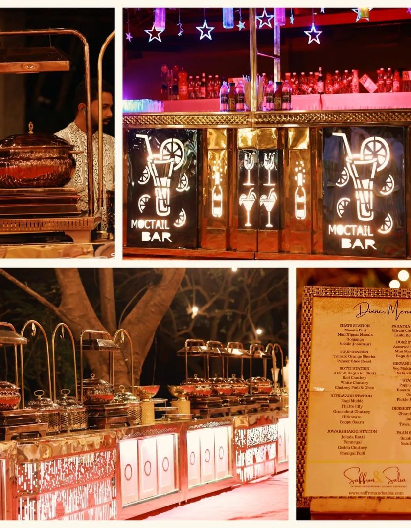 We believe presentation is just as important as taste. We provide a range of sophisticated dining setups, including luxurious gold-plated thalis, elegant buffet counters, and stylish mocktail bars to elevate the dining experience at your event.