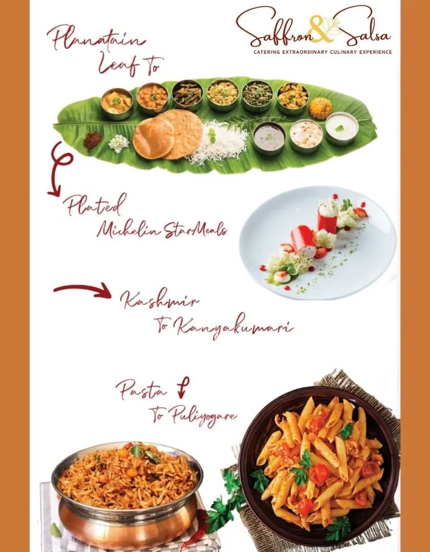 This is the first set of visuals a user sees. It is designed to make an immediate impact, showcasing the breadth, quality, and unique philosophy of Saffron & Salsa. The media are arranged in decreasing order of conversion power.