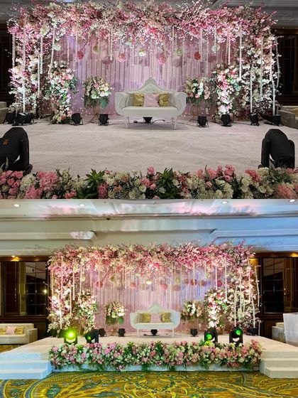 This is where the celebration culminates. We design magnificent stages and reception spaces, from dramatic floral backdrops and jaali panels to immersive overhead installations and ambient lighting that sets the perfect party mood.